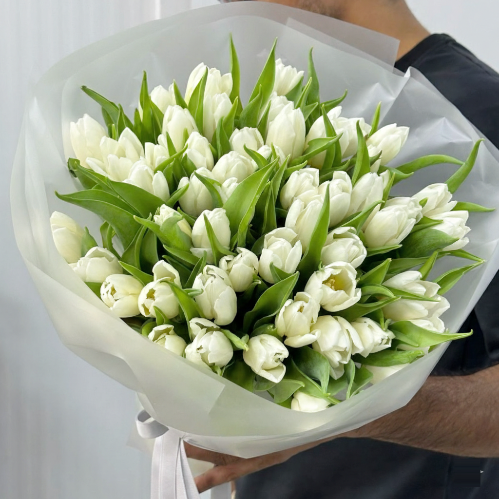 50 White Tulips Bouquet