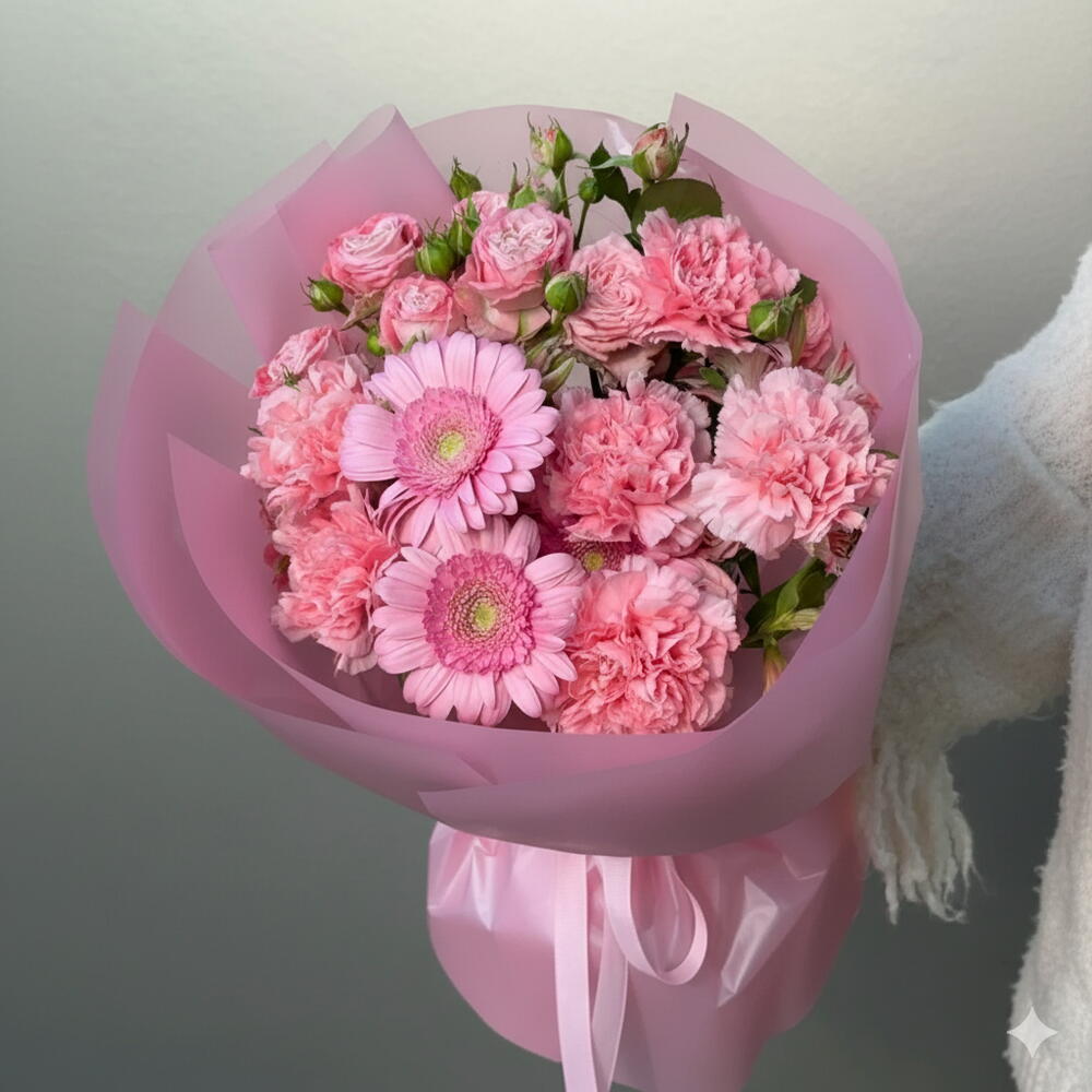 Spray rose - 2 pcs Alstroemeria - 3 pcs Gerbera - 3 pcs Carnations- 6 pcs